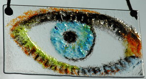 2013De dagpauwoog is één van de mooiste vlinders in onze regio. Gevangen in glas schittert hij voor je ogen. Glasfusie op een stuk boomstam.