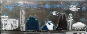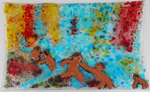 2024Naar een cartoon van R.Crumb (jaren '70) maar dan in glas en 3D. Contour fuse dus met veel reliëf. Het lijkt wel of je het na je pensioen nog drukker krijgt.